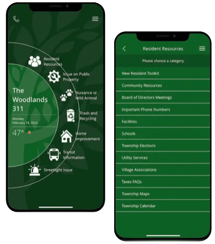 Mobile App: Download TheWoodlands311 app on your mobile device - Google Playstore or Apple App Store